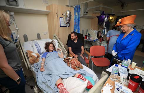 Queen Elizabeth visits young survivors of concert blast