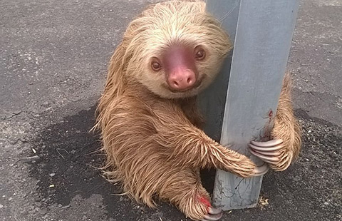 Police officer rescues frightened sloth at corner of busy highway
